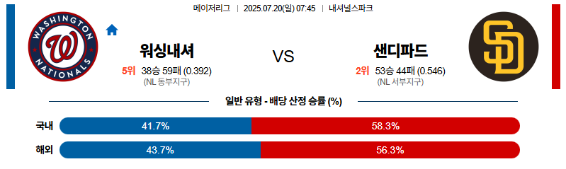 워싱턴 대 샌디에이고 MLB 07월20일 맞대결 생중계, 스포츠중계, 스포츠분석