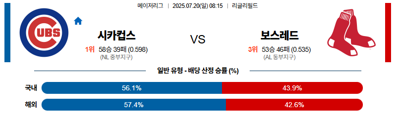 시카고컵스 대 보스턴 MLB 07월20일 맞대결 생중계, 스포츠중계, 스포츠분석