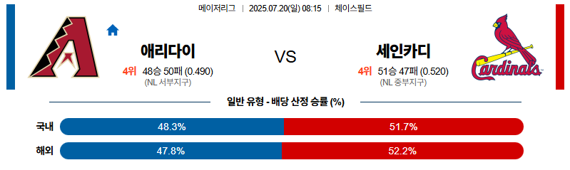 애리조나 대 세인트루이스 MLB 07월20일 맞대결 생중계, 스포츠중계, 스포츠분석