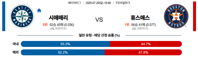 시애틀 대 휴스턴 MLB 07월20일 맞대결 생중계, 스포츠중계, 스포츠분석