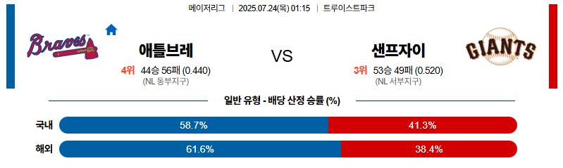 애틀랜타 대 샌프란시스코 MLB 07월24일 맞대결 생중계, 스포츠중계, 스포츠분석
