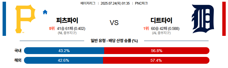 피츠버그 대 디트로이트 MLB 07월24일 맞대결 생중계, 스포츠중계, 스포츠분석