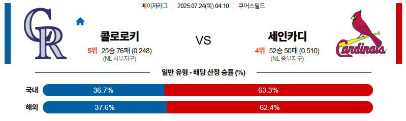 콜로라도 대 세인트루이스 MLB 07월24일 맞대결 생중계, 스포츠중계, 스포츠분석