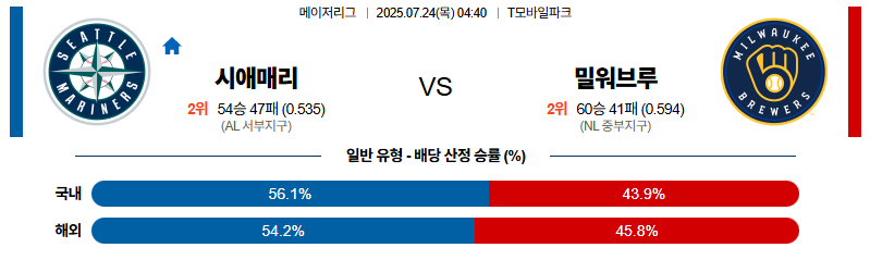 시애틀 대 밀워키 MLB 07월24일 맞대결 생중계, 스포츠중계, 스포츠분석