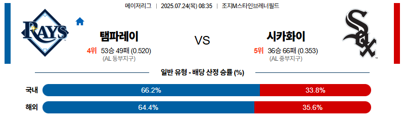 탬파베이 대 시카고W MLB 07월24일 맞대결 생중계, 스포츠중계, 스포츠분석