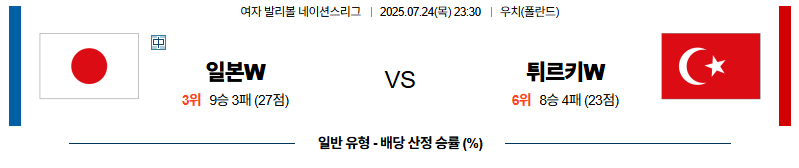 일본 대 튀르키예 네이션스리그(w) 07월24일 맞대결 생중계, 스포츠중계, 스포츠분석