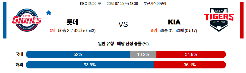 롯데 대 KIA KBO 07월25일 맞대결 생중계, 스포츠중계, 스포츠분석