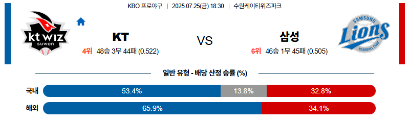 KT 대 삼성 KBO 07월25일 맞대결 생중계, 스포츠중계, 스포츠분석