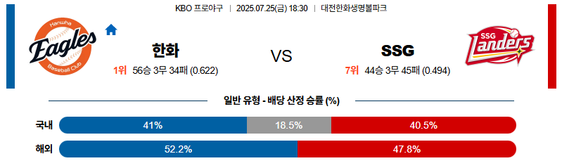 한화 대 SSG KBO 07월25일 맞대결 생중계, 스포츠중계, 스포츠분석