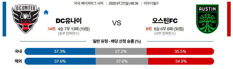 DC유나이티드 대 오스틴 메이저리그사커 07월27일 맞대결 생중계, 스포츠중계, 스포츠분석