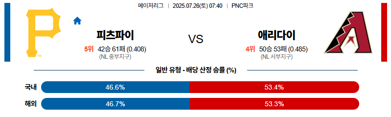 피츠버그 대 애리조나 MLB 07월26일 맞대결 생중계, 스포츠중계, 스포츠분석