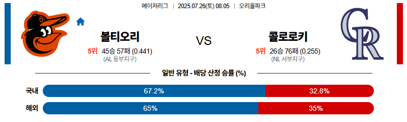 볼티모어 대 콜로라도 MLB 07월26일 맞대결 생중계, 스포츠중계, 스포츠분석