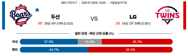 두산 대 LG KBO 07월26일 맞대결 생중계, 스포츠중계, 스포츠분석