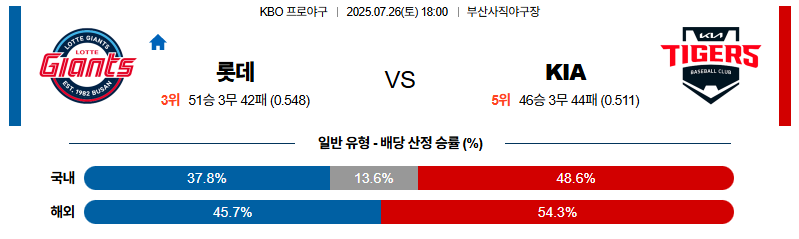 롯데 대 KIA KBO 07월26일 맞대결 생중계, 스포츠중계, 스포츠분석