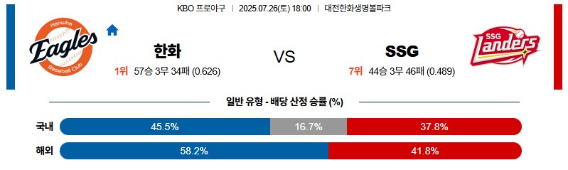 한화 대 SSG KBO 07월26일 맞대결 생중계, 스포츠중계, 스포츠분석