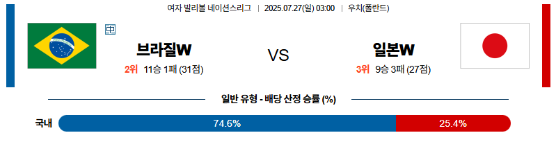 브라질 대 일본 네이션스리그(w) 07월27일 맞대결 생중계, 스포츠중계, 스포츠분석