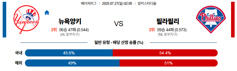 뉴욕양키스 대 필라델피아 MLB 07월27일 맞대결 생중계, 스포츠중계, 스포츠분석