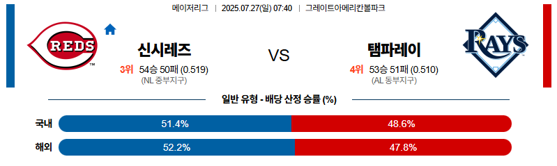 신시내티 대 탬파베이 MLB 07월27일 맞대결 생중계, 스포츠중계, 스포츠분석