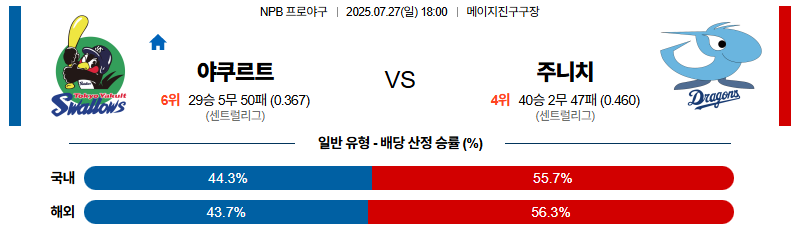 야쿠르트 대 주니치 NPB 07월27일 맞대결 생중계, 스포츠중계, 스포츠분석
