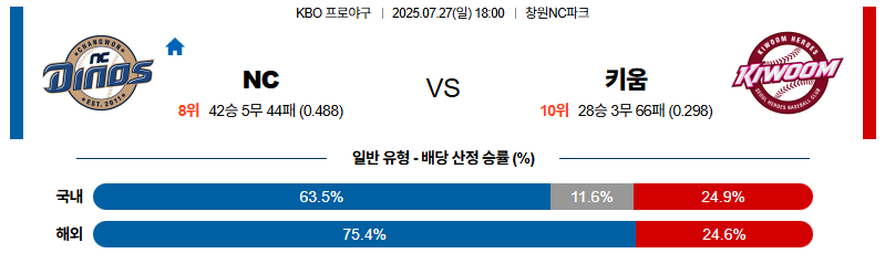 NC 대 키움 KBO 07월27일 맞대결 생중계, 스포츠중계, 스포츠분석