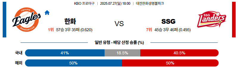 한화 대 SSG KBO 07월27일 맞대결 생중계, 스포츠중계, 스포츠분석