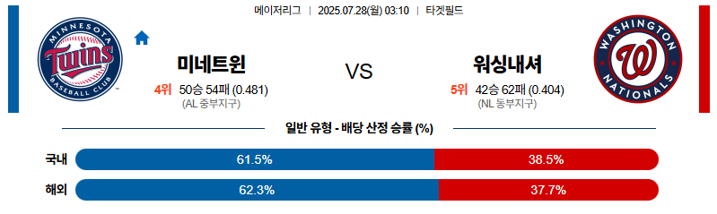 미네소타 대 워싱턴 MLB 07월28일 맞대결 생중계, 스포츠중계, 스포츠분석