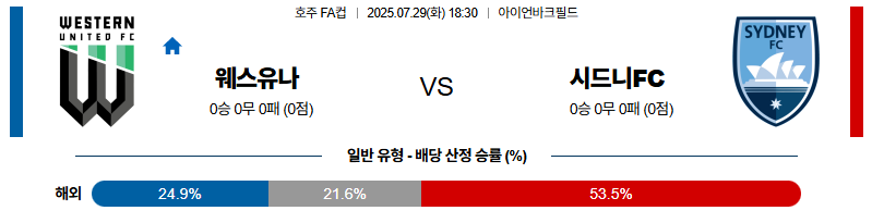웨스턴유나이티드 대 시드니FC 호주FFA 07월29일 맞대결 생중계, 스포츠중계, 스포츠분석