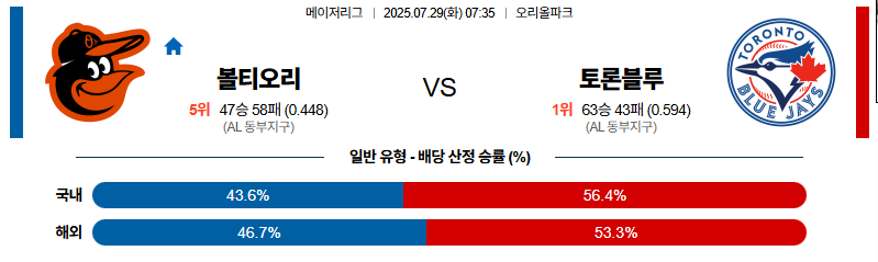 볼티모어 대 토론토 MLB 07월29일 맞대결 생중계, 스포츠중계, 스포츠분석