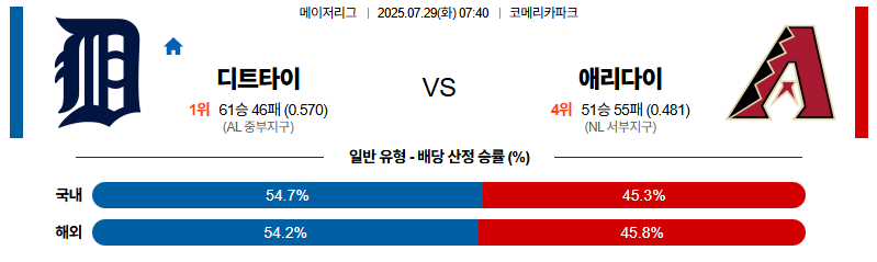 디트로이트 대 애리조나 MLB 07월29일 맞대결 생중계, 스포츠중계, 스포츠분석