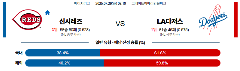 신시내티 대 LA다저스 MLB 07월29일 맞대결 생중계, 스포츠중계, 스포츠분석