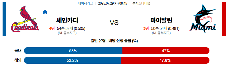 세인트루이스 대 마이애미 MLB 07월29일 맞대결 생중계, 스포츠중계, 스포츠분석