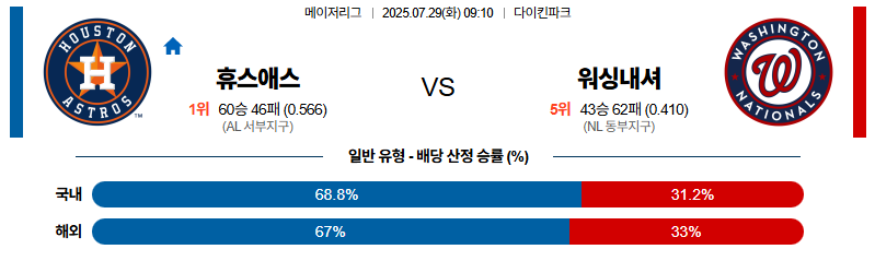 휴스턴 대 워싱턴 MLB 07월29일 맞대결 생중계, 스포츠중계, 스포츠분석