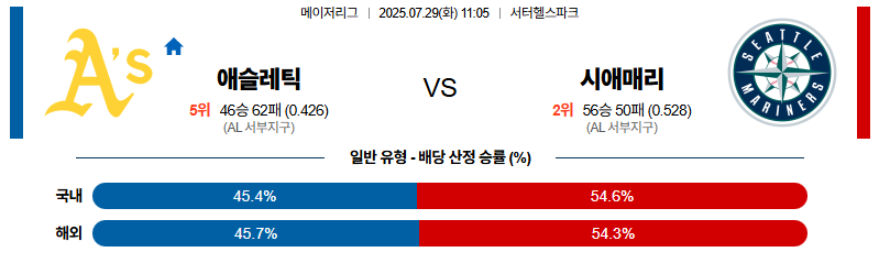 애슬레틱스 대 시애틀 MLB 07월29일 맞대결 생중계, 스포츠중계, 스포츠분석
