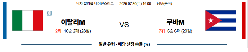 이탈리아 대 쿠바 네이션스리그 07월30일 맞대결 생중계, 스포츠중계, 스포츠분석