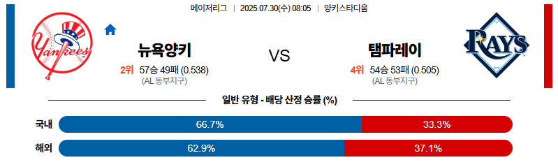 뉴욕양키스 대 탬파베이 MLB 07월30일 맞대결 생중계, 스포츠중계, 스포츠분석