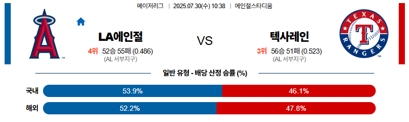 LA에인절스 대 텍사스 MLB 07월30일 맞대결 생중계, 스포츠중계, 스포츠분석