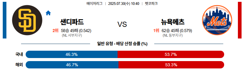 샌디에이고 대 뉴욕메츠 MLB 07월30일 맞대결 생중계, 스포츠중계, 스포츠분석