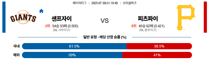 샌프란시스코 대 피츠버그 MLB 07월30일 맞대결 생중계, 스포츠중계, 스포츠분석
