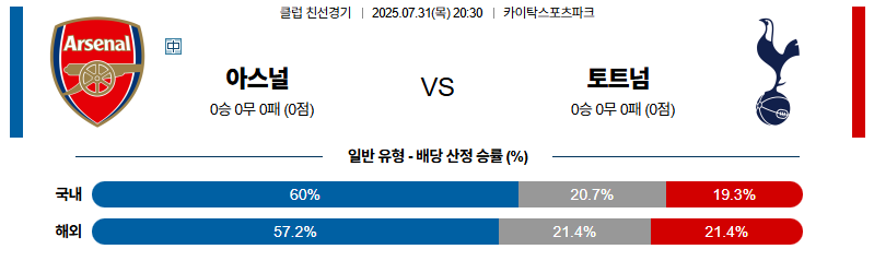 아스널 대 토트넘 클럽친선경기 07월31일 맞대결 생중계, 스포츠중계, 스포츠분석
