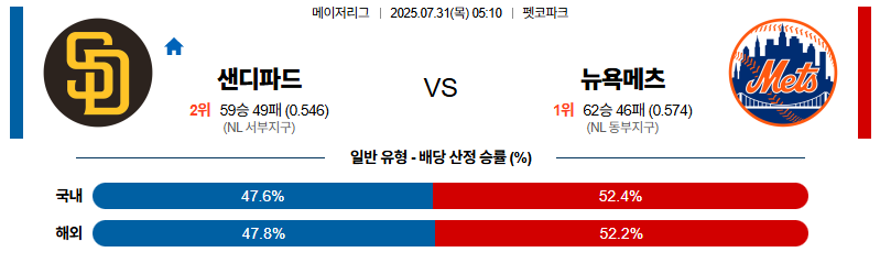 샌디에이고 대 뉴욕메츠 MLB 07월31일 맞대결 생중계, 스포츠중계, 스포츠분석
