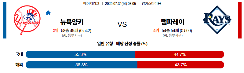 뉴욕양키스 대 탬파베이 MLB 07월31일 맞대결 생중계, 스포츠중계, 스포츠분석