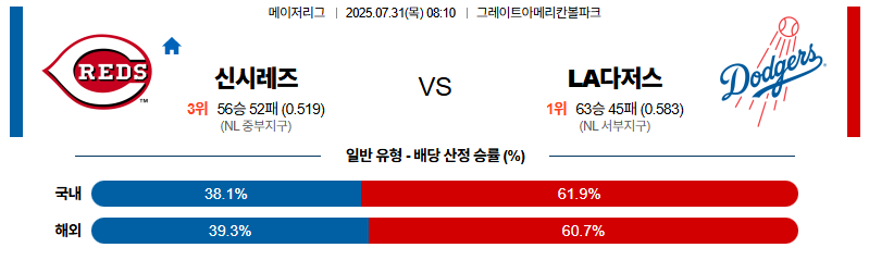 신시내티 대 LA다저스 MLB 07월31일 맞대결 생중계, 스포츠중계, 스포츠분석