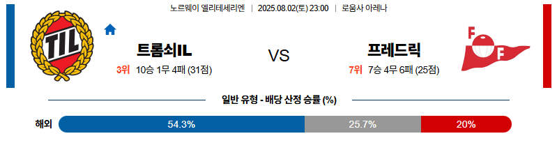 트롬쇠 대 프레드릭스타드 노르웨이1부 08월02일 맞대결 생중계, 스포츠중계, 스포츠분석