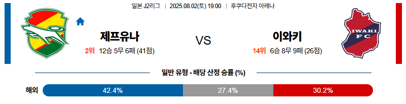 제프유나이티드 대 이와키 J리그2 08월02일 맞대결 생중계, 스포츠중계, 스포츠분석