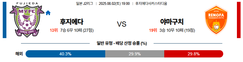 후지에다 대 야마구치 J리그2 08월02일 맞대결 생중계, 스포츠중계, 스포츠분석