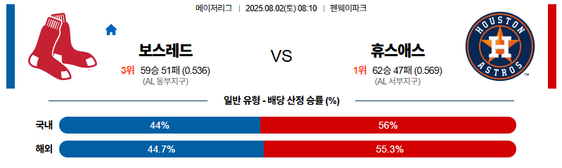 보스턴 대 휴스턴 MLB 08월02일 맞대결 생중계, 스포츠중계, 스포츠분석