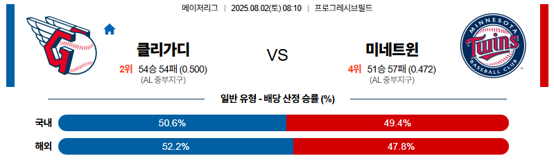 클리블랜드 대 미네소타 MLB 08월02일 맞대결 생중계, 스포츠중계, 스포츠분석