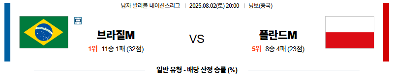 브라질 대 폴란드 네이션스리그 08월02일 맞대결 생중계, 스포츠중계, 스포츠분석