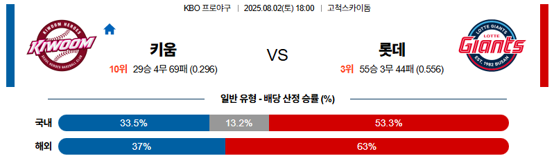 키움 대 롯데 KBO 08월02일 맞대결 생중계, 스포츠중계, 스포츠분석