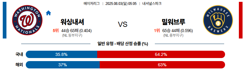 워싱턴 대 밀워키 MLB 08월03일 맞대결 생중계, 스포츠중계, 스포츠분석